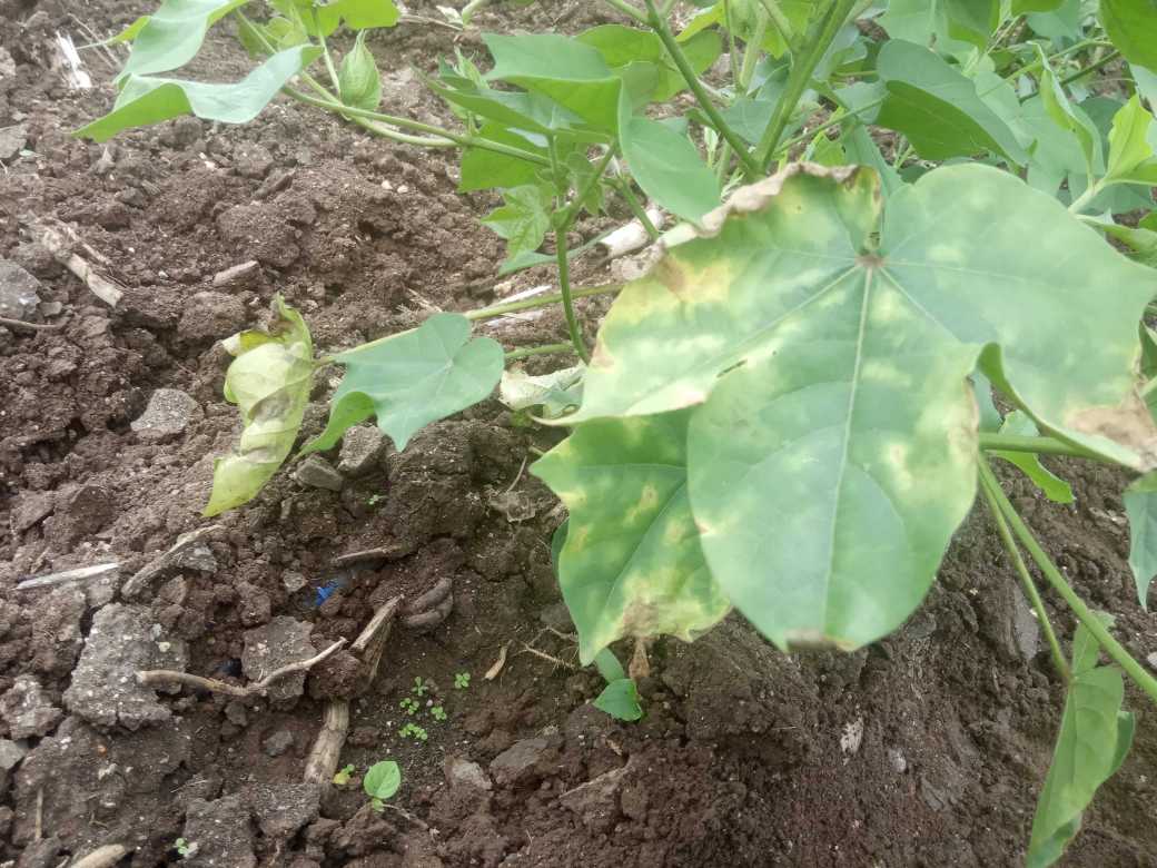 कपासी चे खालच्या साईट चे पाने करपल्या झाले अर्धा एकर मधे 20.30 झाडे आहेकपासी चे खालच्या साईट चे पाने करपल्या झाले अर्धा एकर मधे 20.30 झाडे आहे