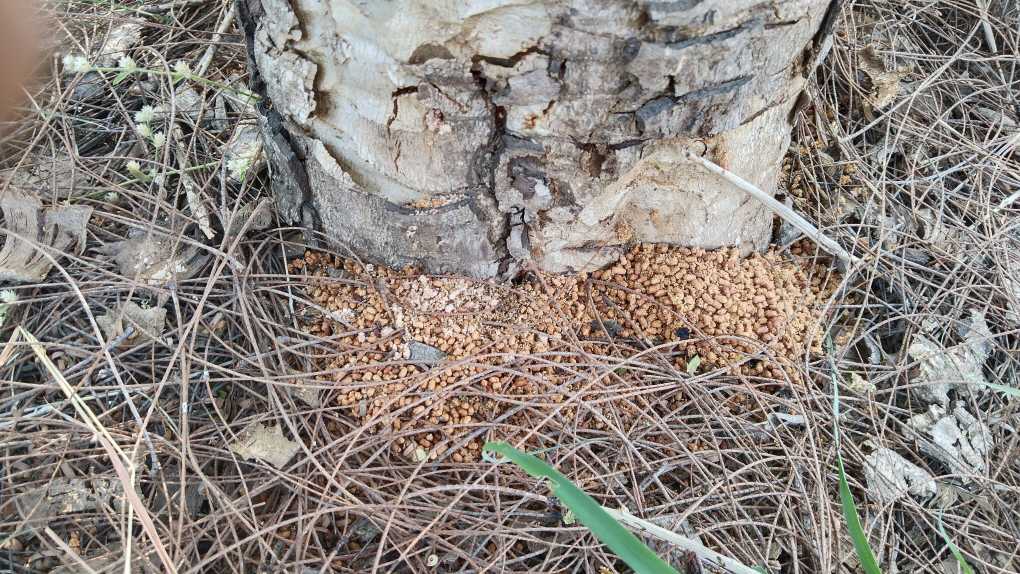 झाडाच्या बुंध्यापाशी पडलेली ही विष्ठा आणि लाकडाचा भुसा हे या किडीचे लक्षण आहे.