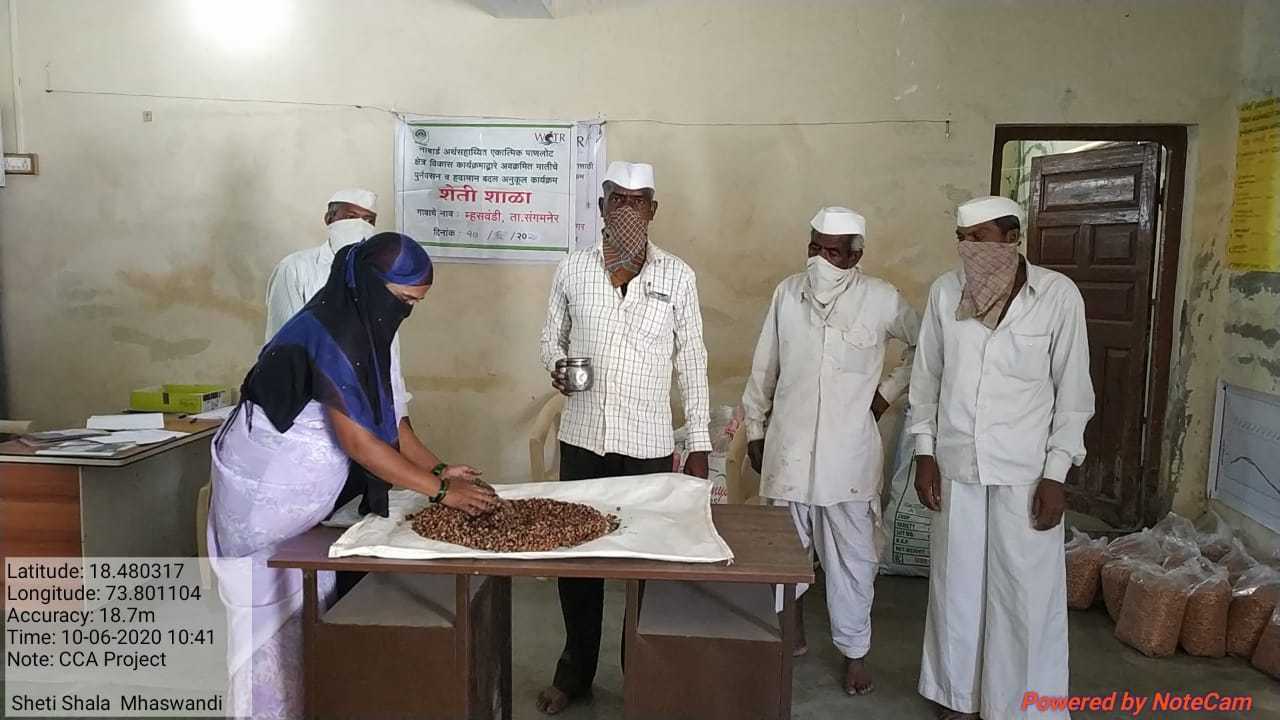 म्हसवंडी गावातील शेतकरी आपल्या सोयाबीन, मका, बाजरी,भुईमूग या बियांनाला बिज प्रक्रिया करताना बीज प्रक्रियेसाठी PSB आणि ऍझोटोबॅक्टर यांचे मिश्रण करून बियांनाला लावले