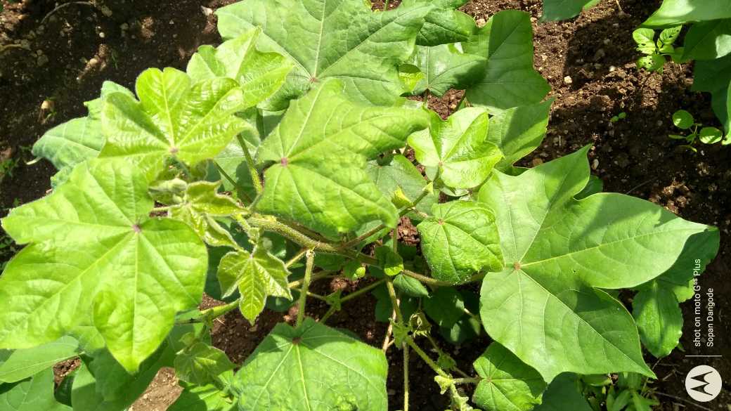 कापूस झाडाची उंची तीन फूट असून पंधरा वीस पाते लागले आहेत.